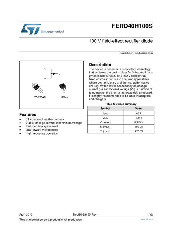 FERD40H100S 100V Field-Effect Rectifier Diode