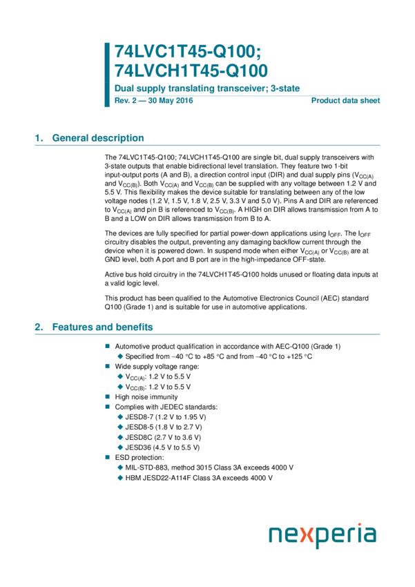 74LVCH1T45GW-Q100 Dual supply translating transceiver; 3-state