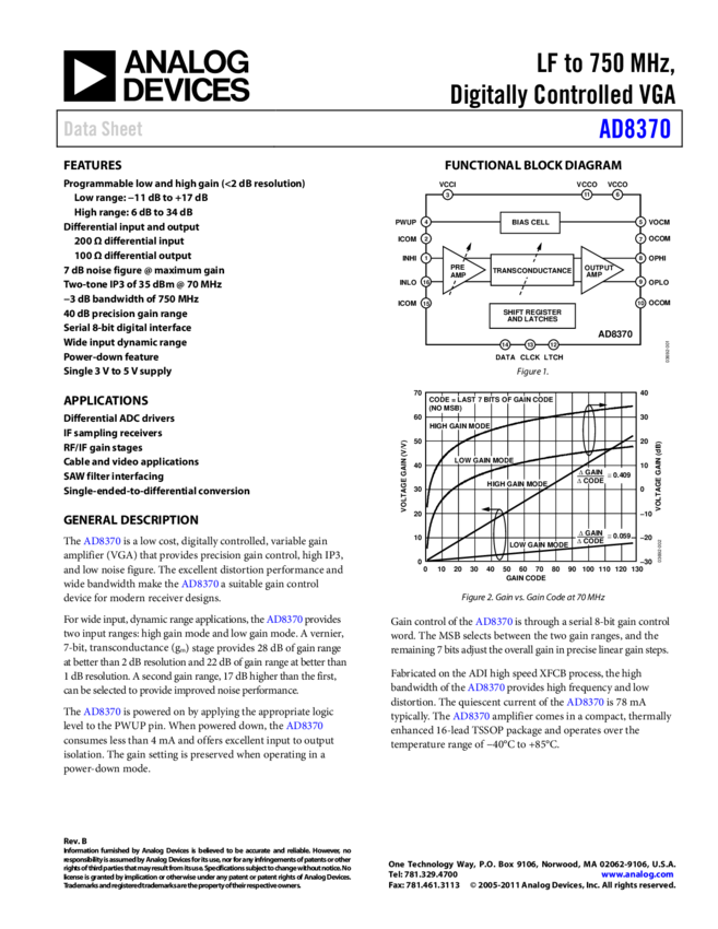 AD8370 750 MH Digitally Controlled Variable Gain Amplifier