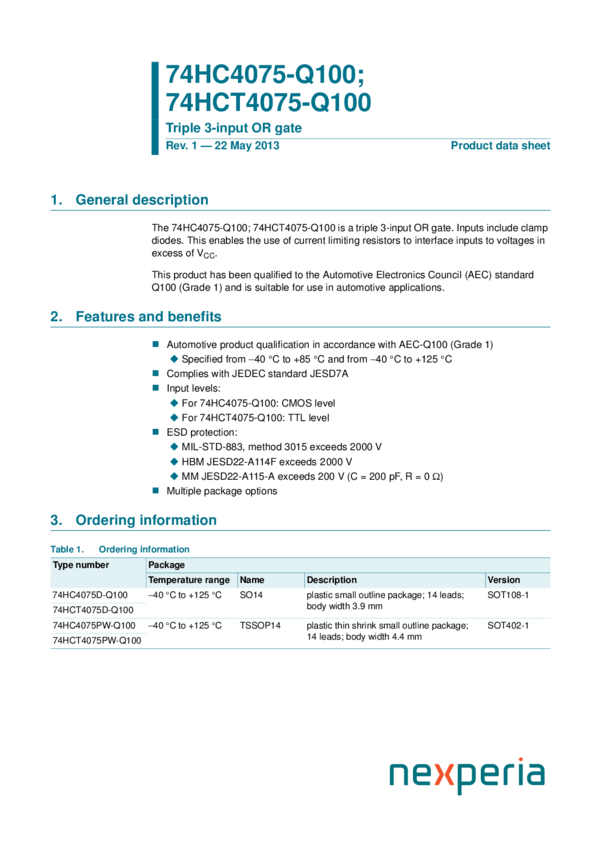 74HC4075PW-Q100, 74HCT4075D-Q100, 74HC4075D-Q100