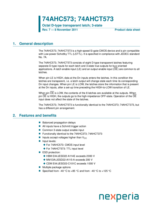 74AHCT573PW, 74AHCT573D, 74AHC573D, 74AHC573PW, 74AHC573BQ
