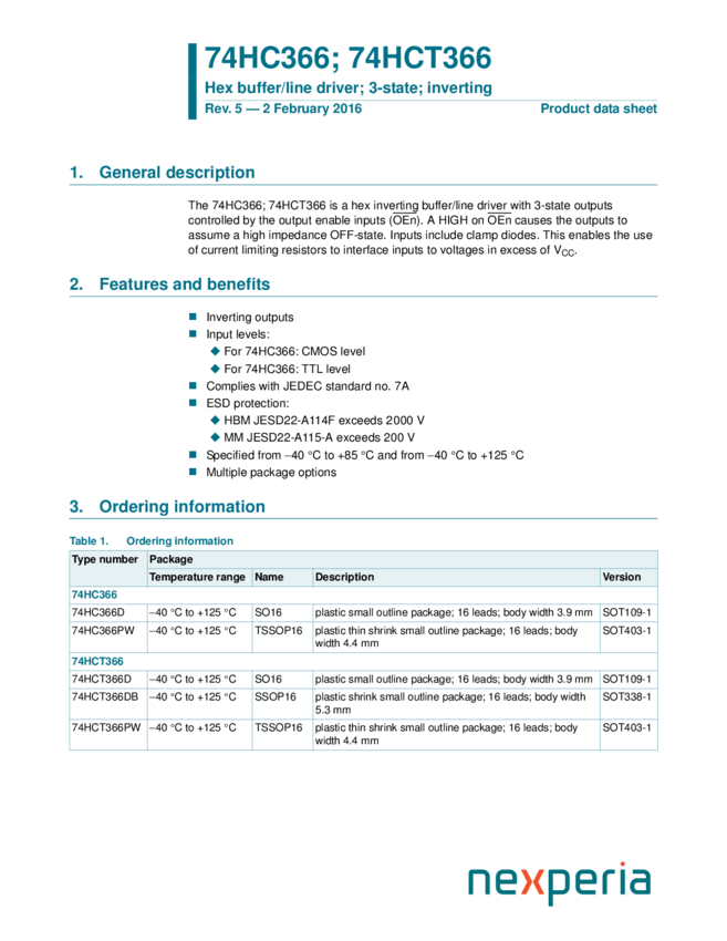 74HCT366DB, 74HC366D, 74HCT366D, 74HC366PW
