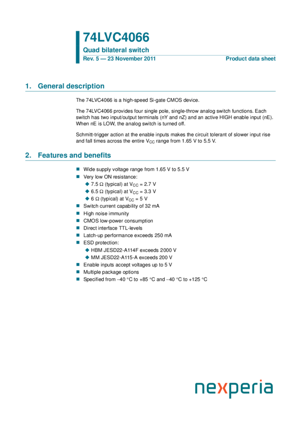 74LVC4066D Quad bilateral switch
