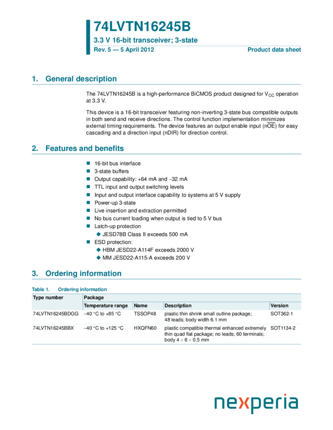 74LVTN16245BBX 3.3 V 16-bit transceiver; 3-state