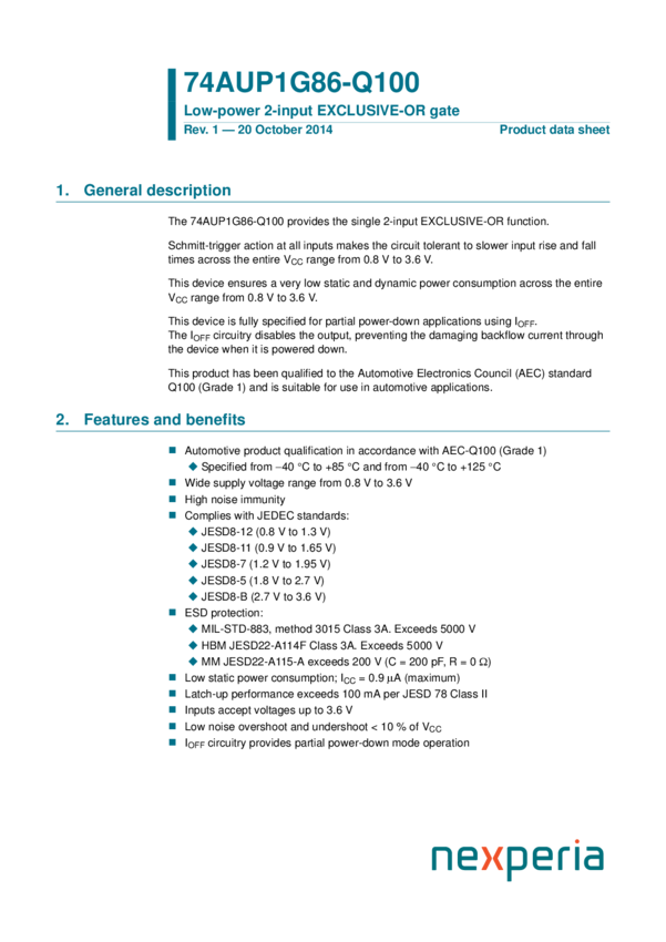 74AUP1G86GW-Q100 Low-power 2-input EXCLUSIVE-OR gate