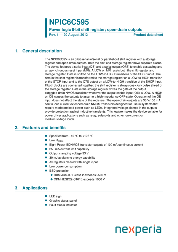 NPIC6C595PW Power logic 8-bit shift register; open-drain outputs