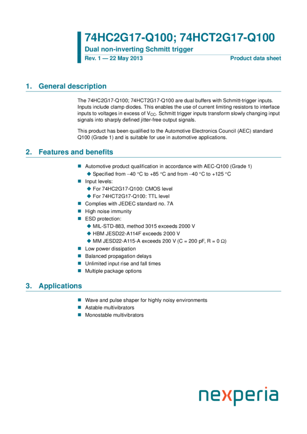 74HC2G17GW-Q100, 74HCT2G17GW-Q100, 74HC2G17GV-Q100