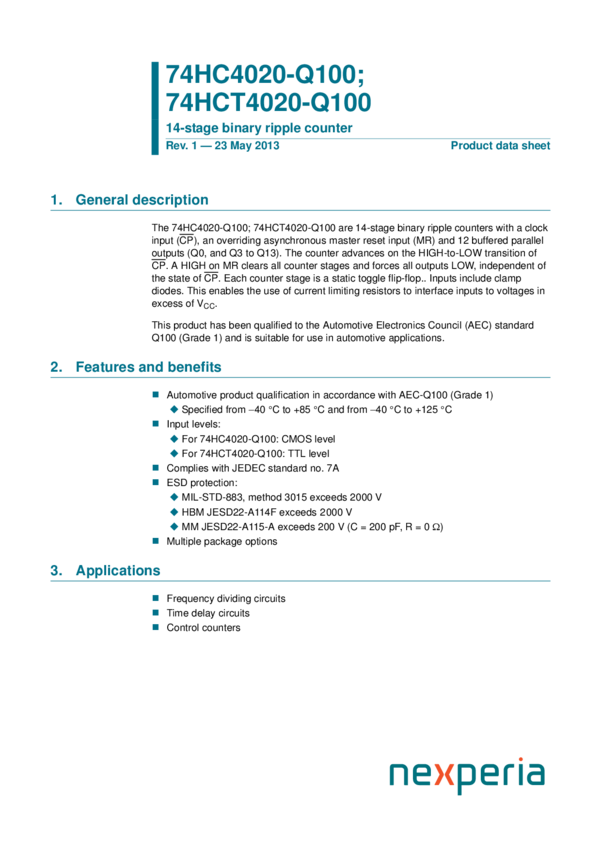 74HC4020PW-Q100, 74HCT4020D-Q100, 74HC4020D-Q100, 74HCT4020BQ-Q100, 74HCT4020PW-Q100