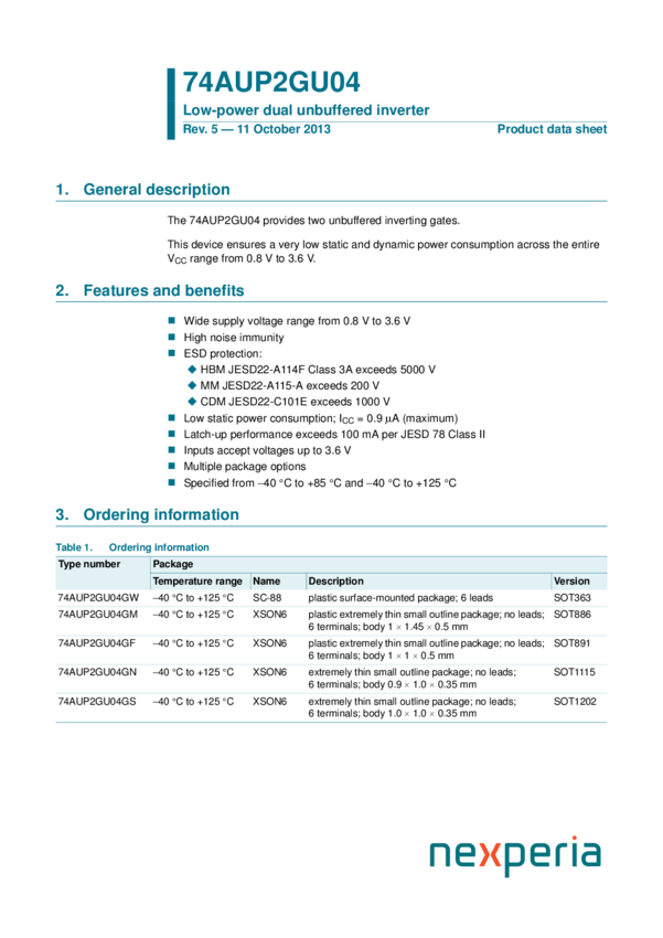 74AUP2GU04GS, 74AUP2GU04GN, 74AUP2GU04GM, 74AUP2GU04GF