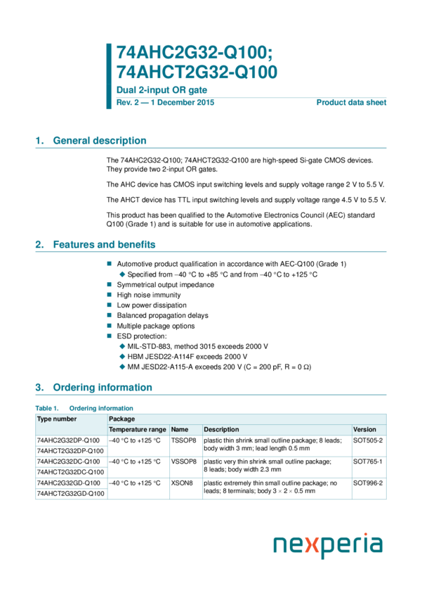 74AHC2G32DP-Q100, 74AHCT2G32GD-Q100, 74AHC2G32DC-Q100, 74AHC2G32GD-Q100, 74AHCT2G32DP-Q100