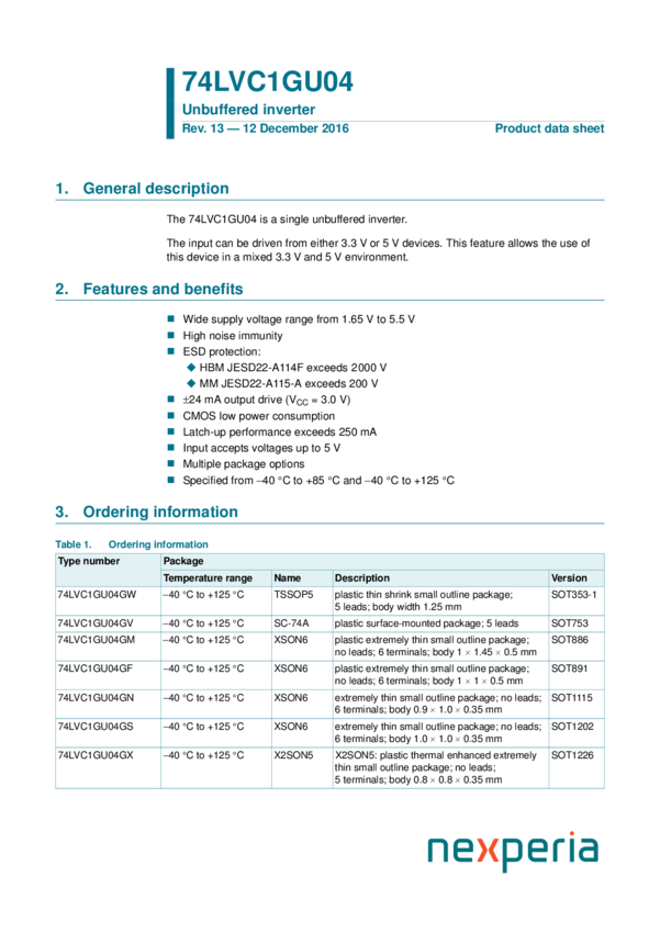 74LVC1GU04GX, 74LVC1GU04GV, 74LVC1GU04GS, 74LVC1GU04GN, 74LVC1GU04GM, 74LVC1GU04GF, 74LVC1GU04GZ
