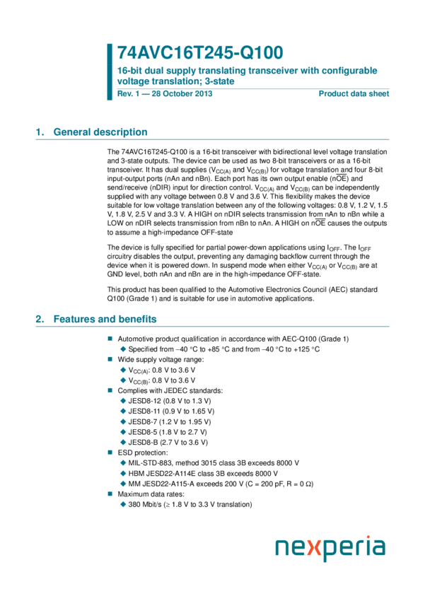 74AVC16T245DGV-Q100 16-bit dual supply translating transceiver with configurable voltage transl...