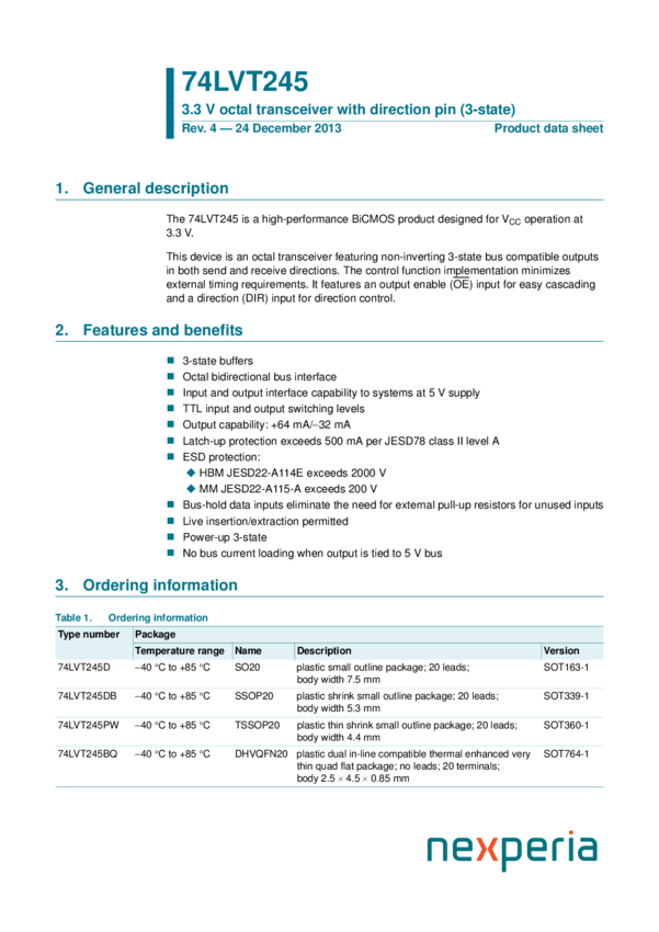 74LVT245DB, 74LVT245BQ, 74LVT245D