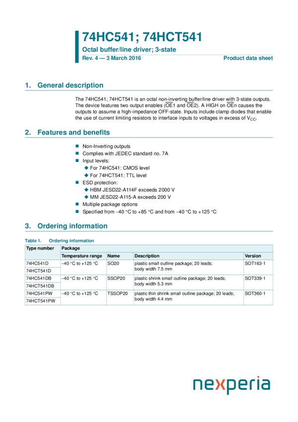 74HC541PW, 74HC541DB, 74HCT541PW, 74HCT541DB, 74HC541D