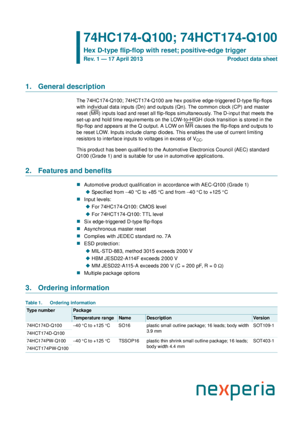 74HCT174D-Q100, 74HCT174PW-Q100, 74HC174PW-Q100