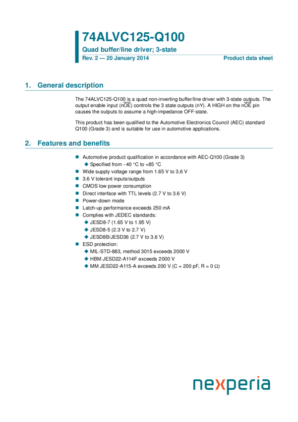 74ALVC125BQ-Q100, 74ALVC125PW-Q100