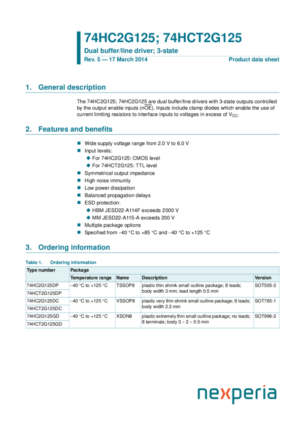 74HCT2G125DP, 74HCT2G125DC, 74HC2G125GD, 74HC2G125DP, 74HC2G125DC