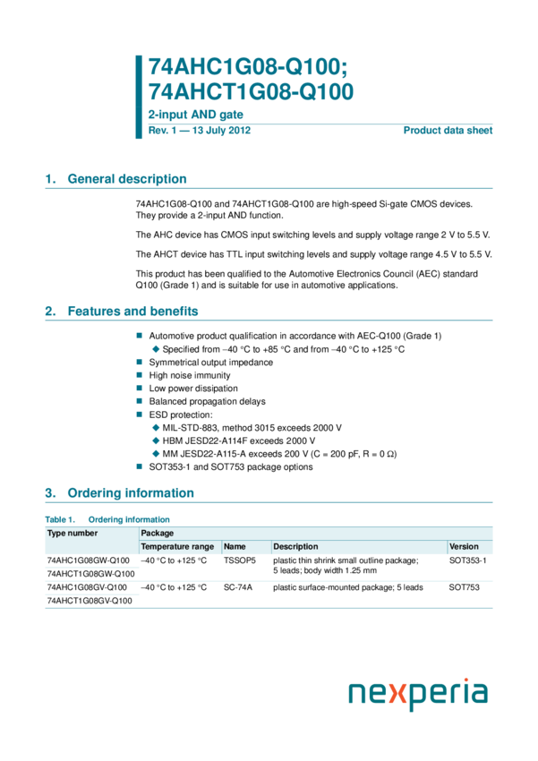 74AHCT1G08GV-Q100, 74AHCT1G08GW-Q100, 74AHC1G08GV-Q100, 74AHC1G08GZ-Q100