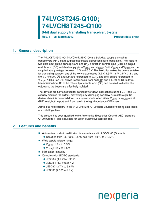 74LVCH8T245BQ-Q100, 74LVC8T245PW-Q100, 74LVCH8T245PW-Q100