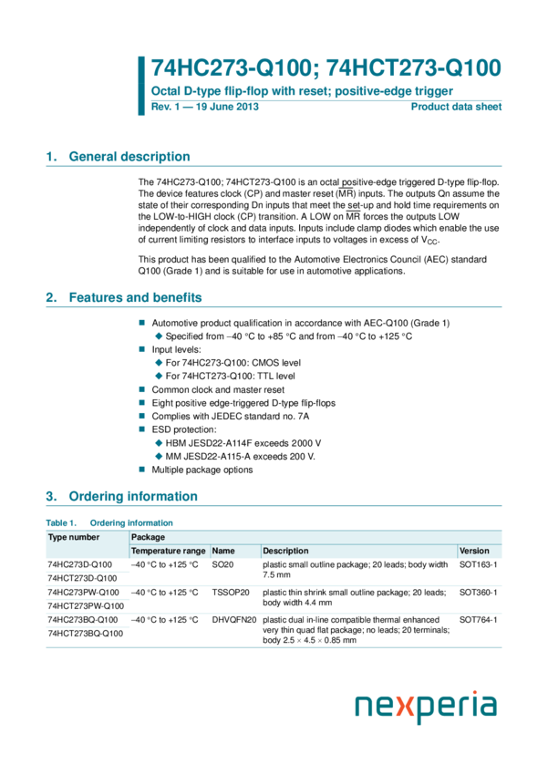 74HC273PW-Q100, 74HCT273BQ-Q100, 74HCT273PW-Q100, 74HCT273D-Q100, 74HC273BQ-Q100