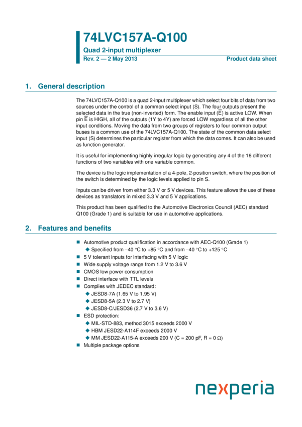 74LVC157APW-Q100, 74LVC157ADB-Q100, 74LVC157AD-Q100