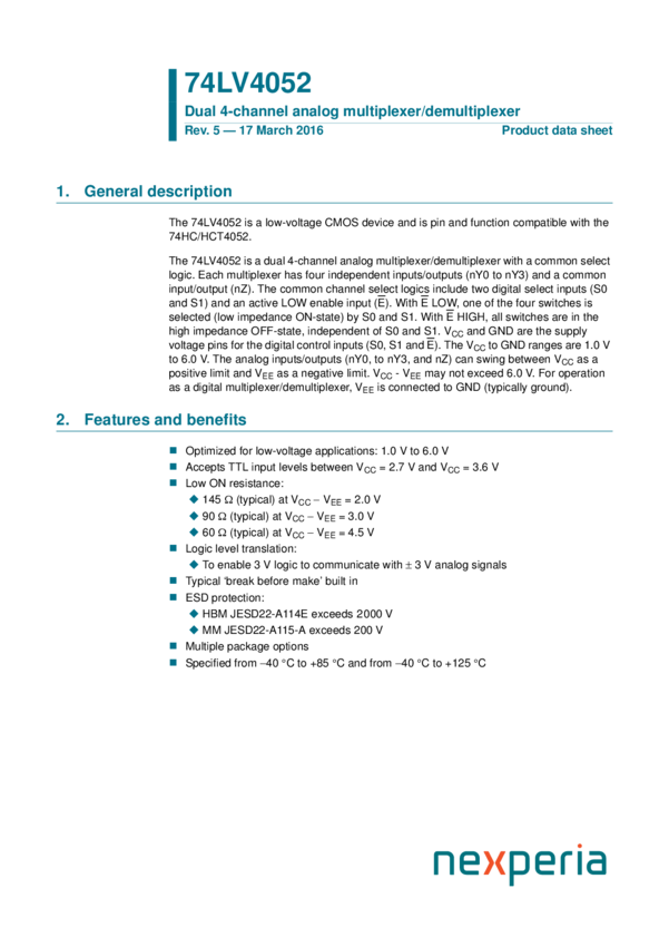 74LV4052PW Dual 4-channel analog multiplexer/demultiplexer