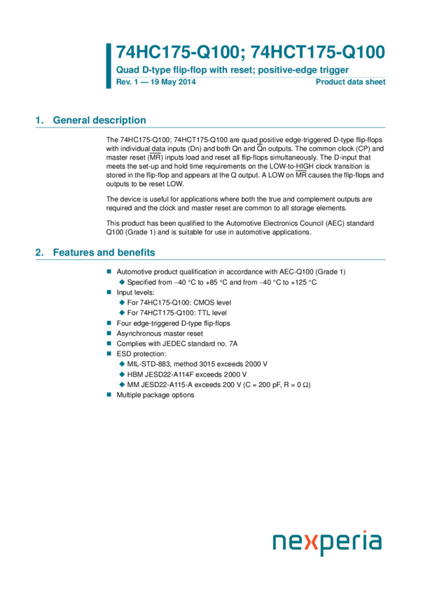 74HCT175PW-Q100, 74HC175D-Q100, 74HC175PW-Q100