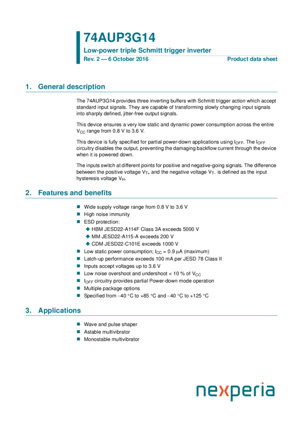 74AUP3G14GT Low-power triple Schmitt trigger inverter