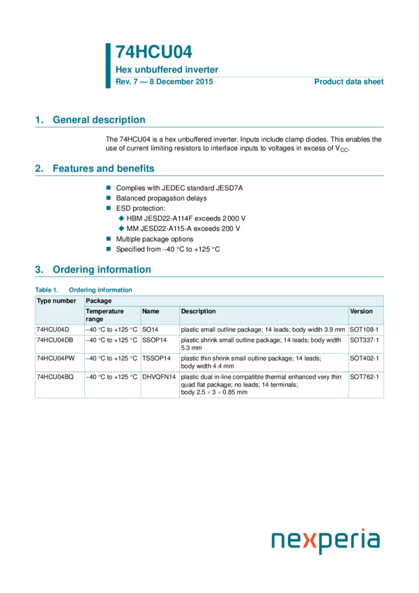 74HCU04DB, 74HCU04BQ, 74HCU04D