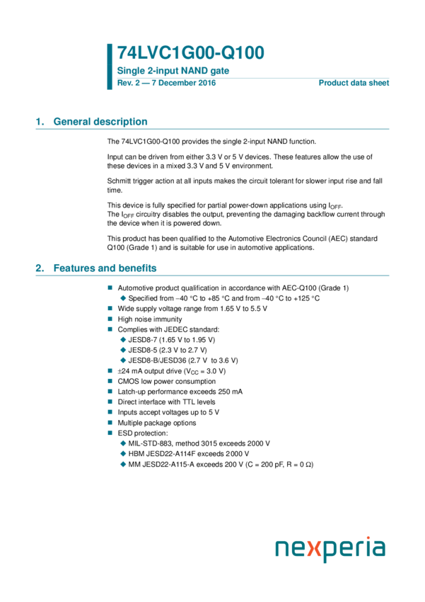 74LVC1G00GV-Q100, 74LVC1G00GZ-Q100