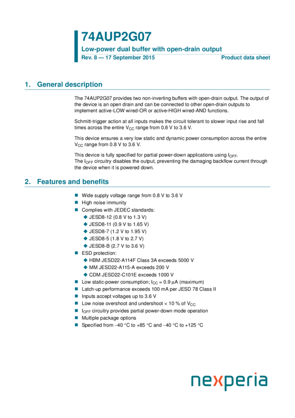 74AUP2G07GW, 74AUP2G07GS, 74AUP2G07GN, 74AUP2G07GM, 74AUP2G07GF