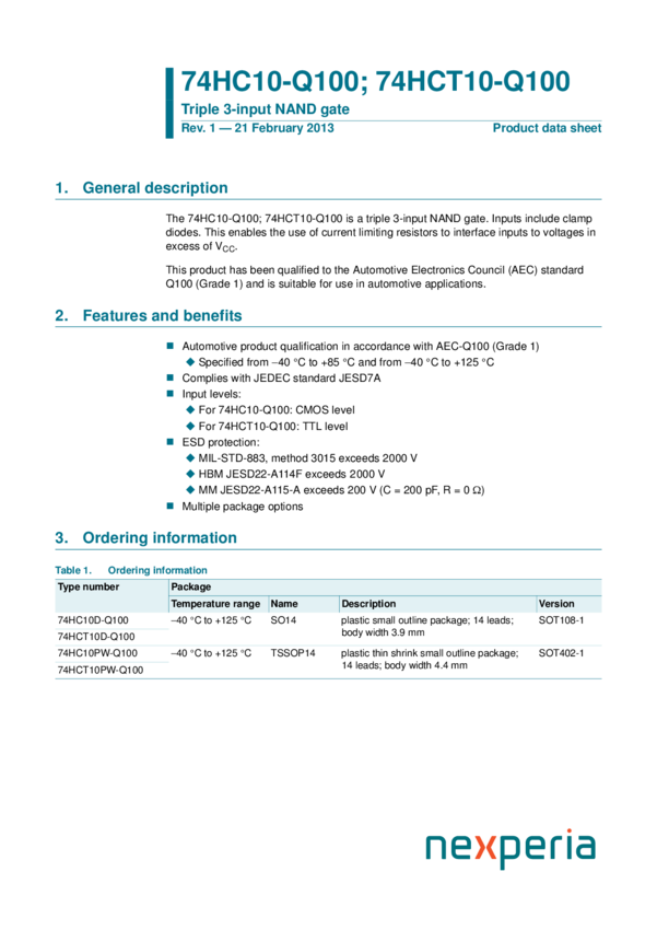 74HCT10D-Q100, 74HCT10PW-Q100, 74HC10PW-Q100