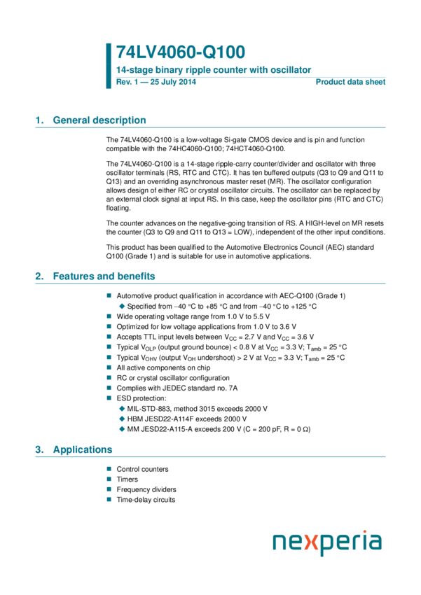 74LV4060PW-Q100 14-stage binary ripple counter with oscillator
