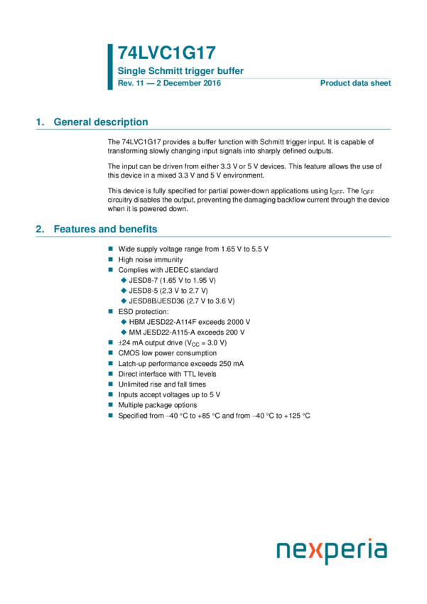 74LVC1G17GW, 74LVC1G17GV, 74LVC1G17GS, 74LVC1G17GN, 74LVC1G17GM, 74LVC1G17GF, 74LVC1G17GZ, 74LVC1G17GX4