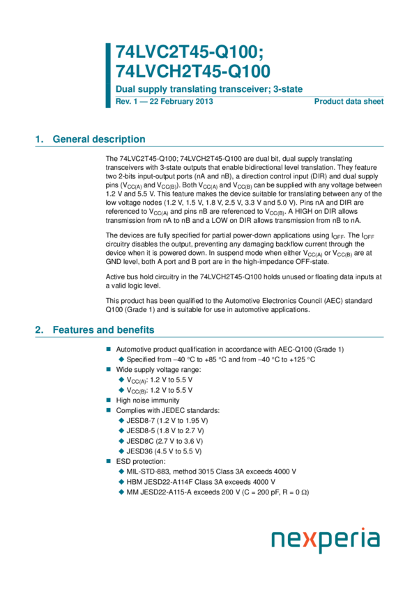74LVCH2T45DC-Q100, 74LVC2T45GS-Q100, 74LVC2T45GT-Q100
