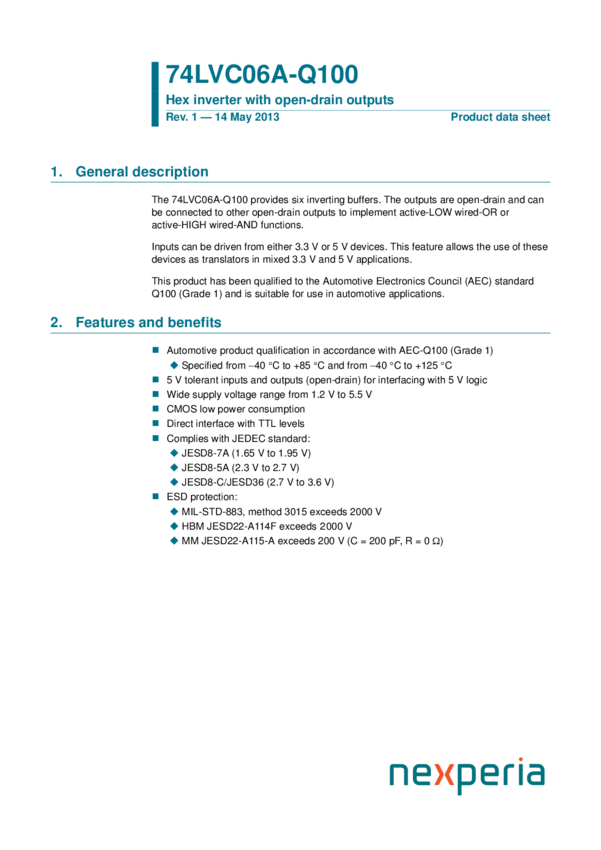 74LVC06AD-Q100 Hex inverter with open-drain outputs
