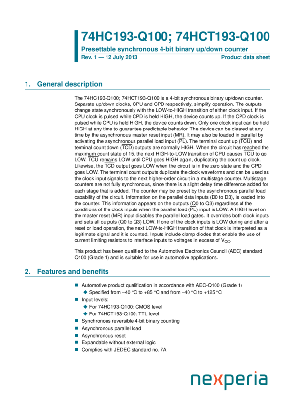 74HCT193PW-Q100, 74HC193PW-Q100, 74HCT193DB-Q100, 74HCT193D-Q100, 74HC193D-Q100