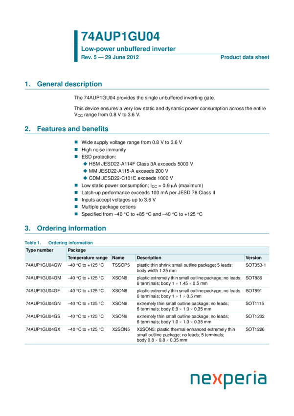 74AUP1GU04GW, 74AUP1GU04GS, 74AUP1GU04GN, 74AUP1GU04GM, 74AUP1GU04GF