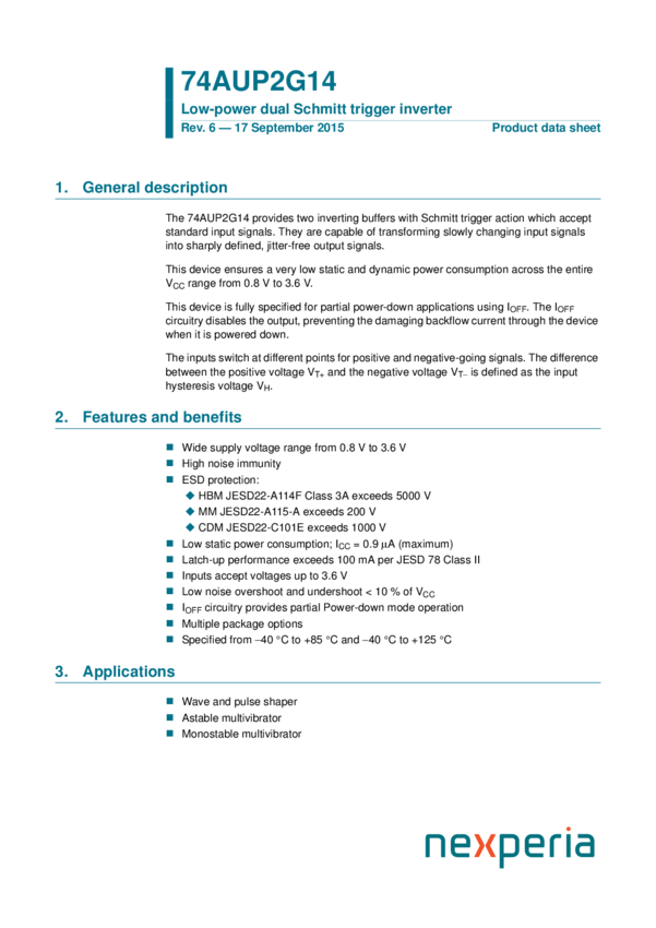 74AUP2G14GX Low-power dual Schmitt trigger inverter