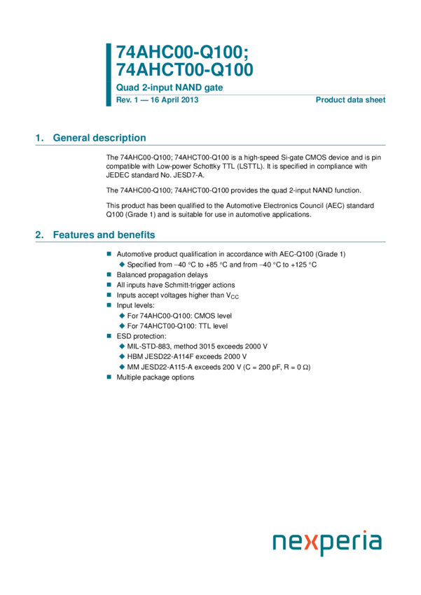 74AHC00D-Q100, 74AHCT00D-Q100, 74AHCT00BQ-Q100, 74AHCT00PW-Q100, 74AHC00BQ-Q100