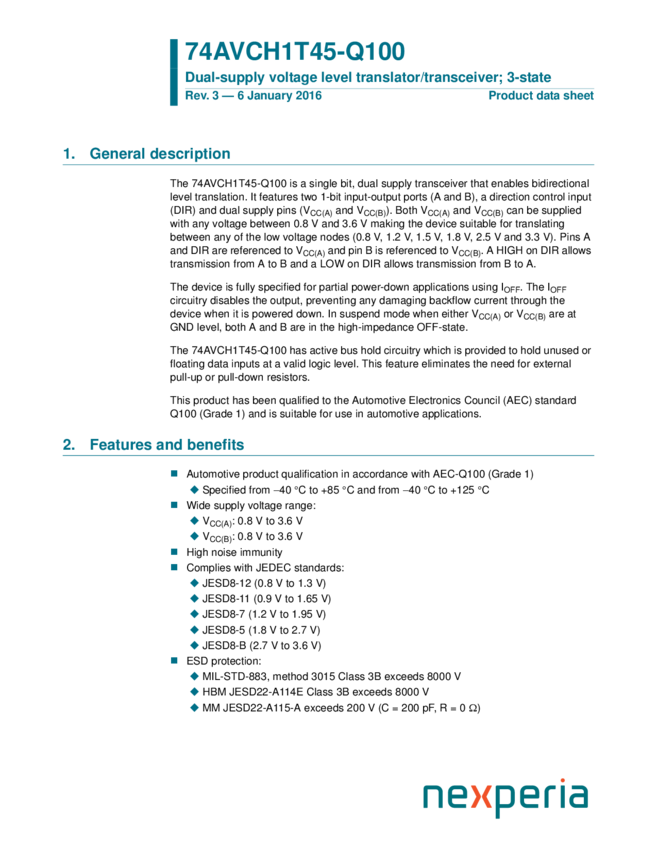 74AVCH1T45GW-Q100 Dual-supply voltage level translator/transceiver; 3-state