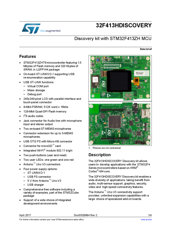 32F413HDISCOVERY Discovery kit with STM32F413ZH MCU