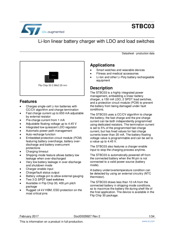 STBC03 Li-Ion linear battery charger with LDO and load switches
