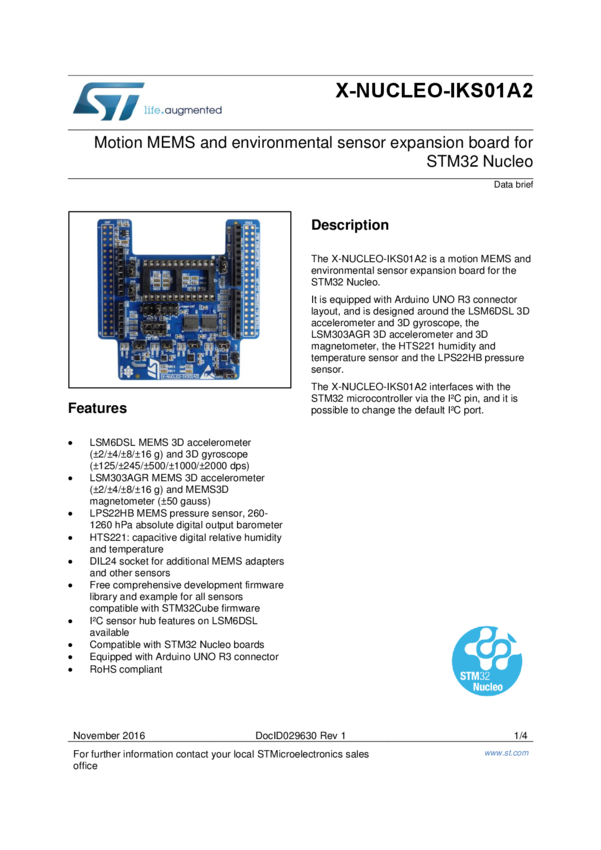 Motion MEMS and environmental sensor expansion board for STM32 Nucleo