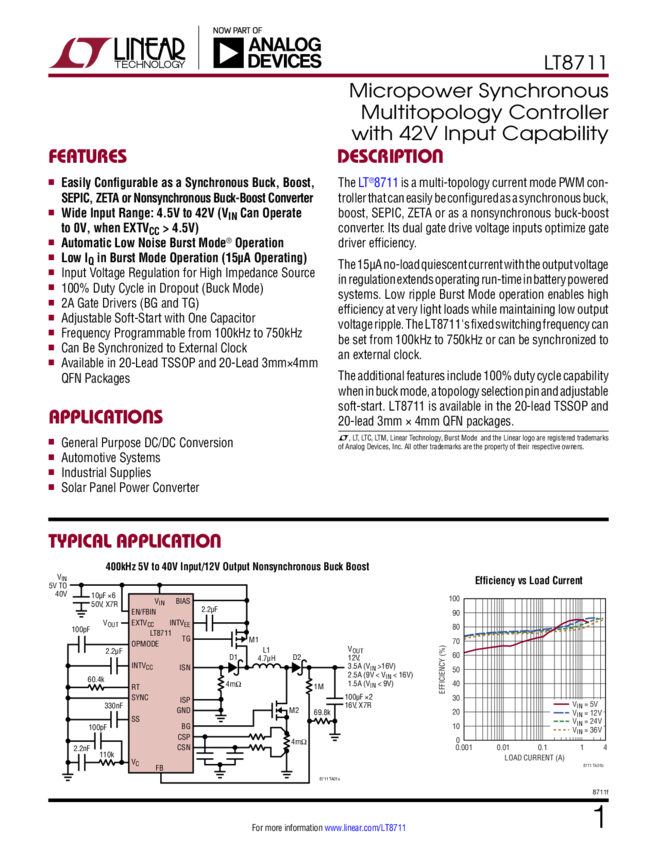 LT8711 Micropower Synchronous Multitopology Controller with 42V Input Capability