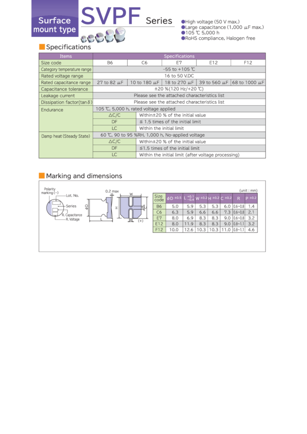 35SVPF39M, 50SVPF10M, 35SVPF82M, 35SVPF22M, 25SVPF56M, 25SVPF47M, 20SVPF180M, 20SVPF56MX, 16SVPF1000M, 16SVPF82M, 20SVPF120M, 50SVPF18M, 20SVPF560M, 16SVPF180M, 25SVPF82M, 25SVPF330M, 50SVPF39M