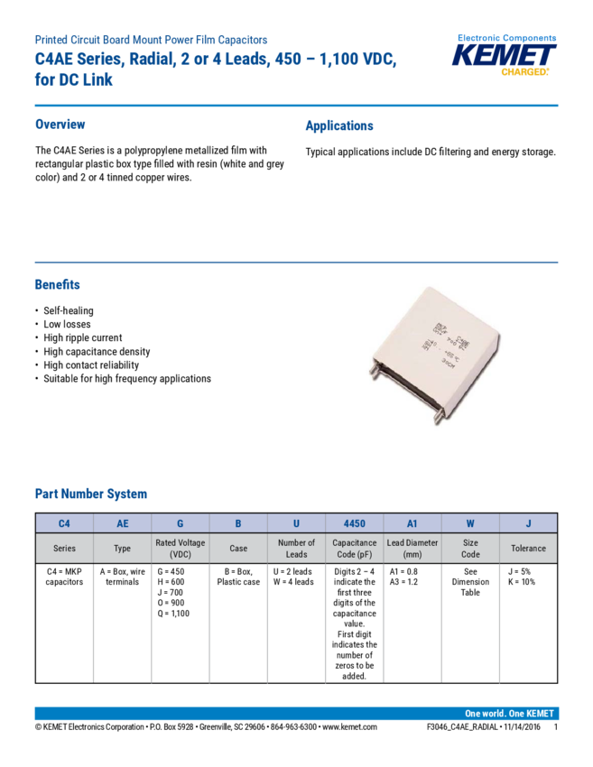 C4AEQBW4800A3FJ Cap Film 8uF 1100V PP 5% (41.5 X 20 X 40mm) Radial 37.5mm 85°C Bulk