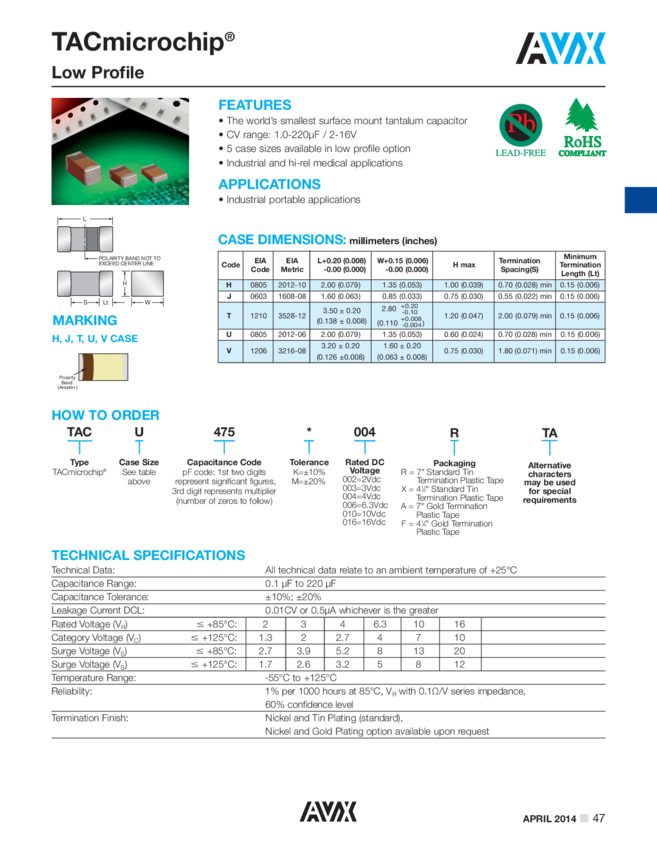 TACT227M003XTA Cap Tant Solid 220uF 3V T CASE 20% (3.5 X 2.8 X 1.2mm) SMD 3528-12 1 Ohm 12...