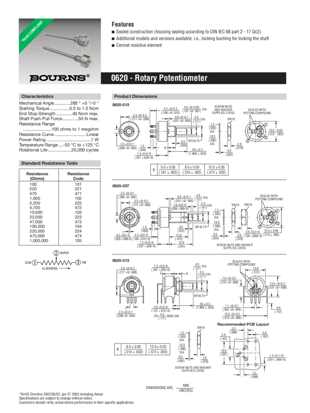 0620-313U500-AB222 Res Potentiometer 2.2K Ohm 20% 1W 1Turns 4mm 13 x 57.3mm Thru-Hole