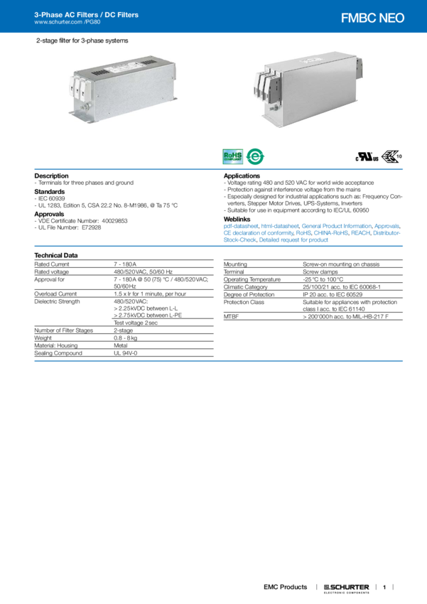 FMBC NEO FILTER 3PH 2ST 100A 480VAC